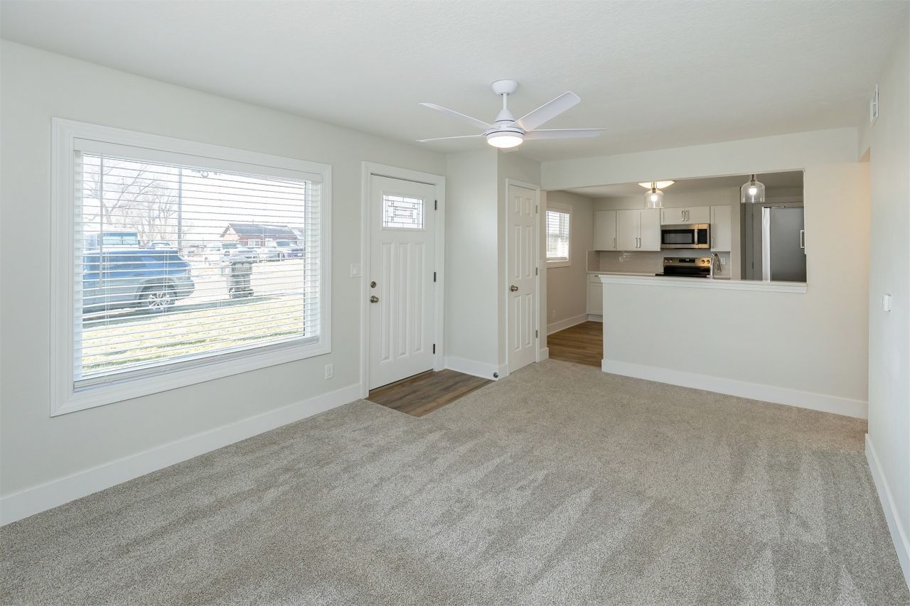 Inside, the kitchen stands out with quartz countertops, stainless steel appliances, a stylish tile backsplash, and durable LVP flooring designed for everyday living. The bathroom has been fully upgraded with a modern tiled shower, while new carpet, fresh paint, and updated trim throughout create a clean, cohesive feel.