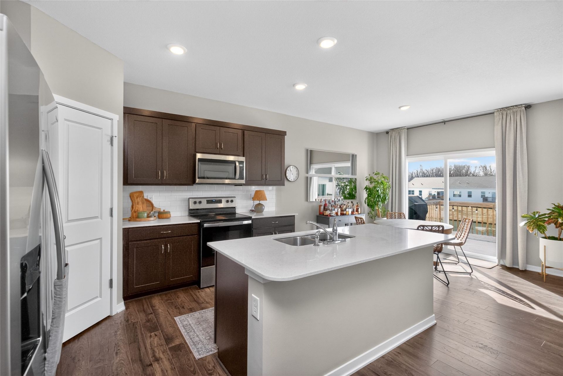 Better than new construction! This stylish bi-attached ranch offers 3 bedrooms, 3 bathrooms, and beautiful pond views. The open-concept kitchen is designed for both everyday living and entertaining, featuring a large center island, corner pantry, and stunning quartz countertops. It flows seamlessly into the bright living area with LVP flooring, an electric fireplace, and oversized windows showcasing peaceful pond views. The primary suite is a relaxing retreat with a spacious walk-in closet highlighted by a barn door and a private ensuite bath with dual vanities. A second bedroom and full bath at the front of the home offer ideal privacy for guests, family, or a home office. The finished walkout lower level expands your living space with a second living area, third bedroom, full bath, and a large storage room?perfect for entertaining, guests, or hobbies. Enjoy low monthly dues that cover lawn care and snow removal?giving you more time to take advantage of everything Ankeny has to offer, including top-rated schools, parks, trails, shopping, and dining just minutes away. Schedule your showing today!
